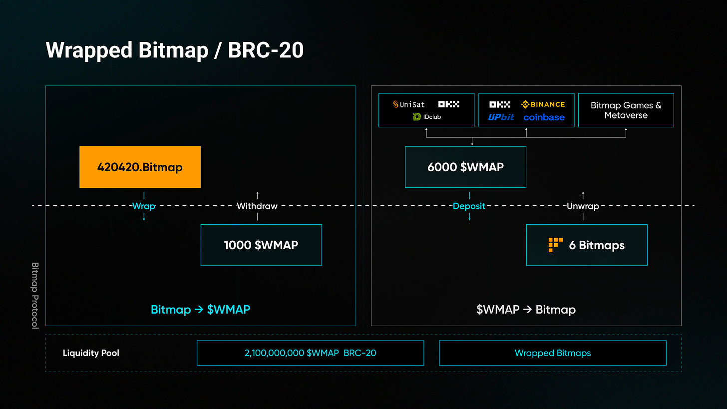 以 Bitmap 为例,图币互换支持 1 个 Bitmap 兑换为 1000 个 $WMAP,也可以将 1000 个 $WMAP 重新换回 1 个 Bitmap,双方处于一个锚定关系,转换过程的成本消耗基本为 0。