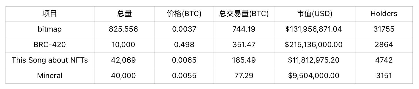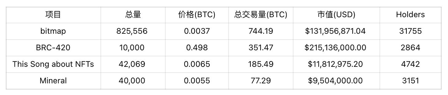个人认为 BRC-420 没有太多的优质资产,另外鉴于 Bitmap 与 BRC-420 强相关,尽管其并非 BRC-420 资产,也一并将其纳入关注列表(记录于 24.01.13)。