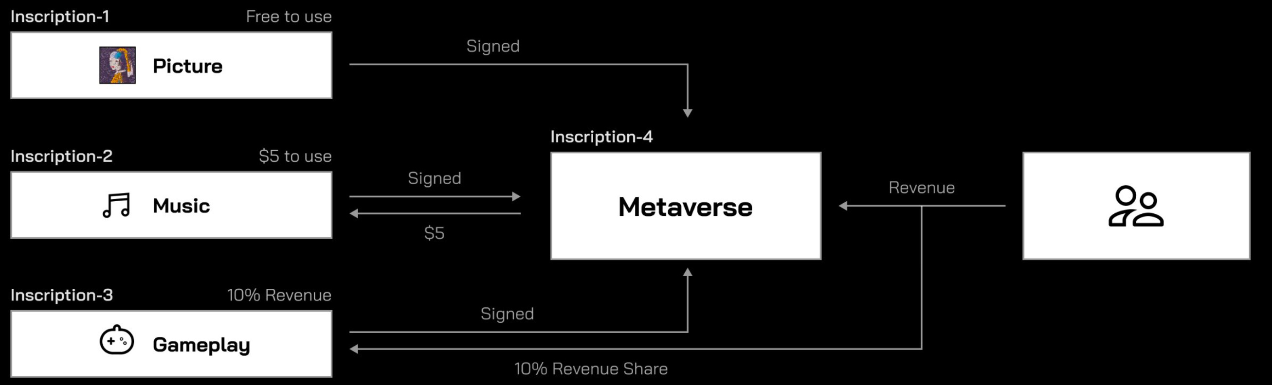 BRC-420 通过实施一种将使用权与版税相结合的系统,为数字资产提供新的收入来源,对于创作者经济、链上版权和元宇宙经济学都有重要的应用。